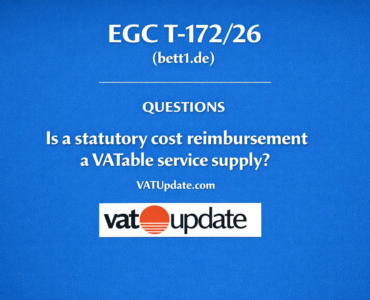 European UnionGermany EGC VAT Case T-172/26 (bett1.de) – Questions – Is a statutory cost reimbursement a VATable service supply? 1 day ago